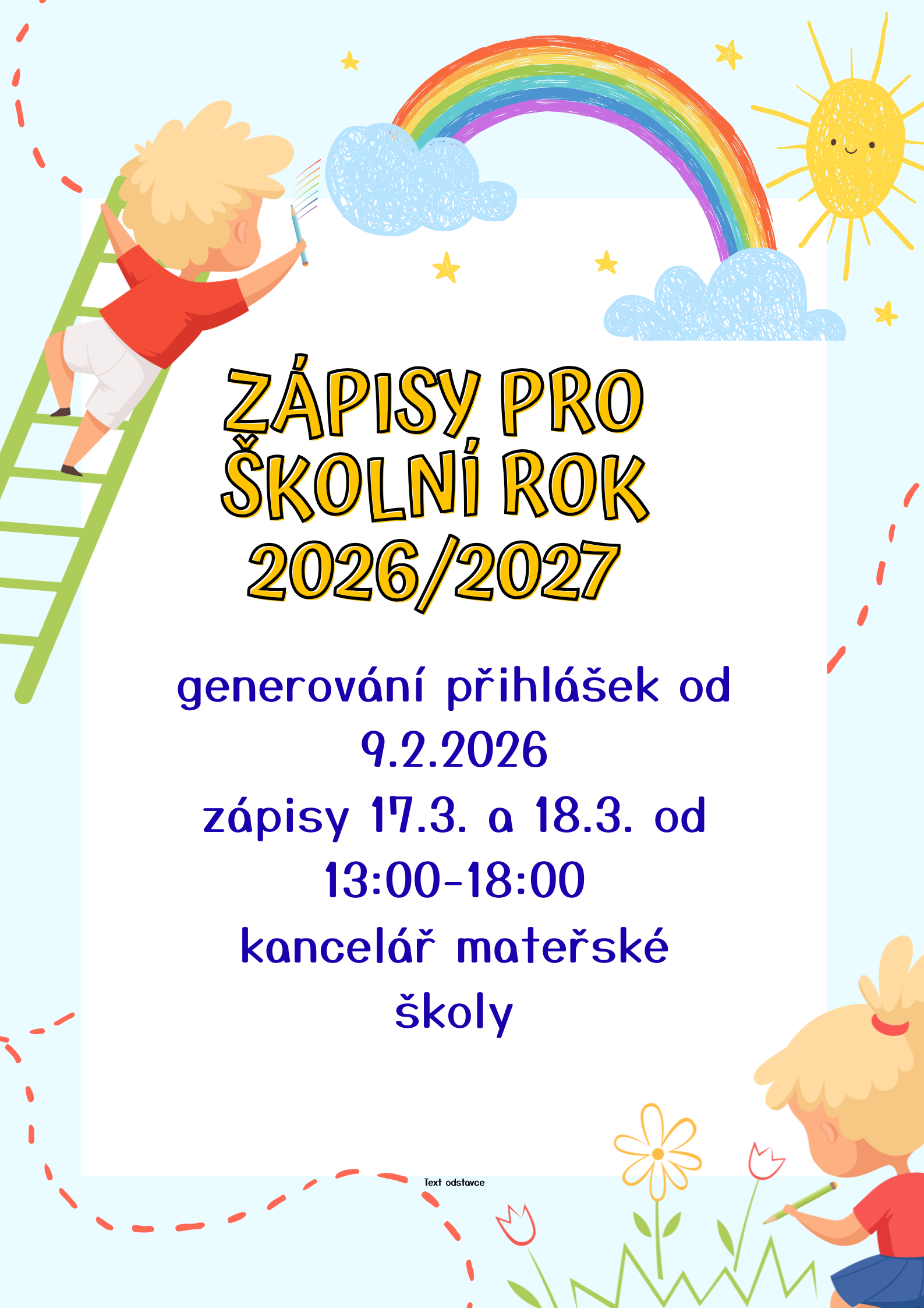 9.2. OD 8:00 DO 15:00 SBĚR PŘIHLÁŠEK V KANCELÁŘI MŠ